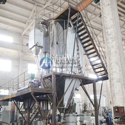 壓力噴霧造粒干燥機是一種能同時完成干燥和造粒的噴霧干燥機。根據工藝要求,可以調節料液泵的壓力、流量和噴孔尺寸,按照一定的尺寸比獲得所需的球形顆粒。YPL系列壓力噴霧造粒干燥機的工作原理及配置選擇:熔融物料被泵入高壓泵的進料管,獲得高壓(調節),進入切向旋轉的室。